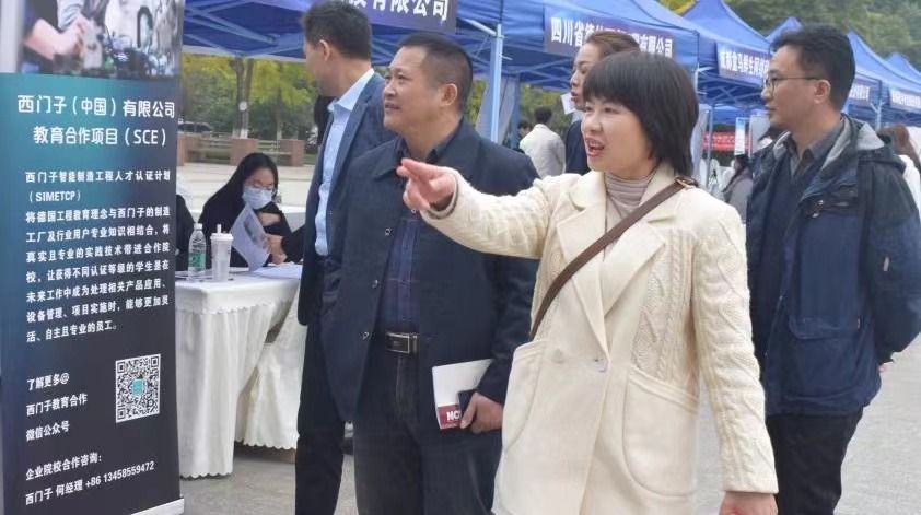 郫都区就业局局长蔡昌林和工作人员也在现场搭建郫都区人才咨询点,为毕业生普及郫都区就业政策和养老金、社会保险知识,助力毕业生就业。