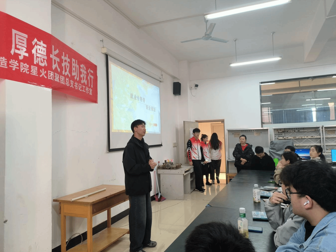 2023年11月23日,智造学院团总支邀请三位优秀毕业生返校,在学院楼B203开展”风华正茂扬帆起,厚德长技助我行“主题演讲。