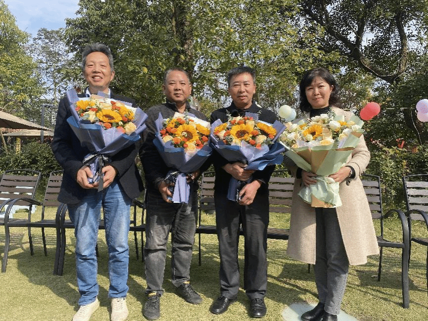 随后,智造学院年轻教师向退休教师献花,每一束鲜花都寓含着深深地敬意和祝福,象征着新教师对老教师的尊重和对于未来的坚定信念。
