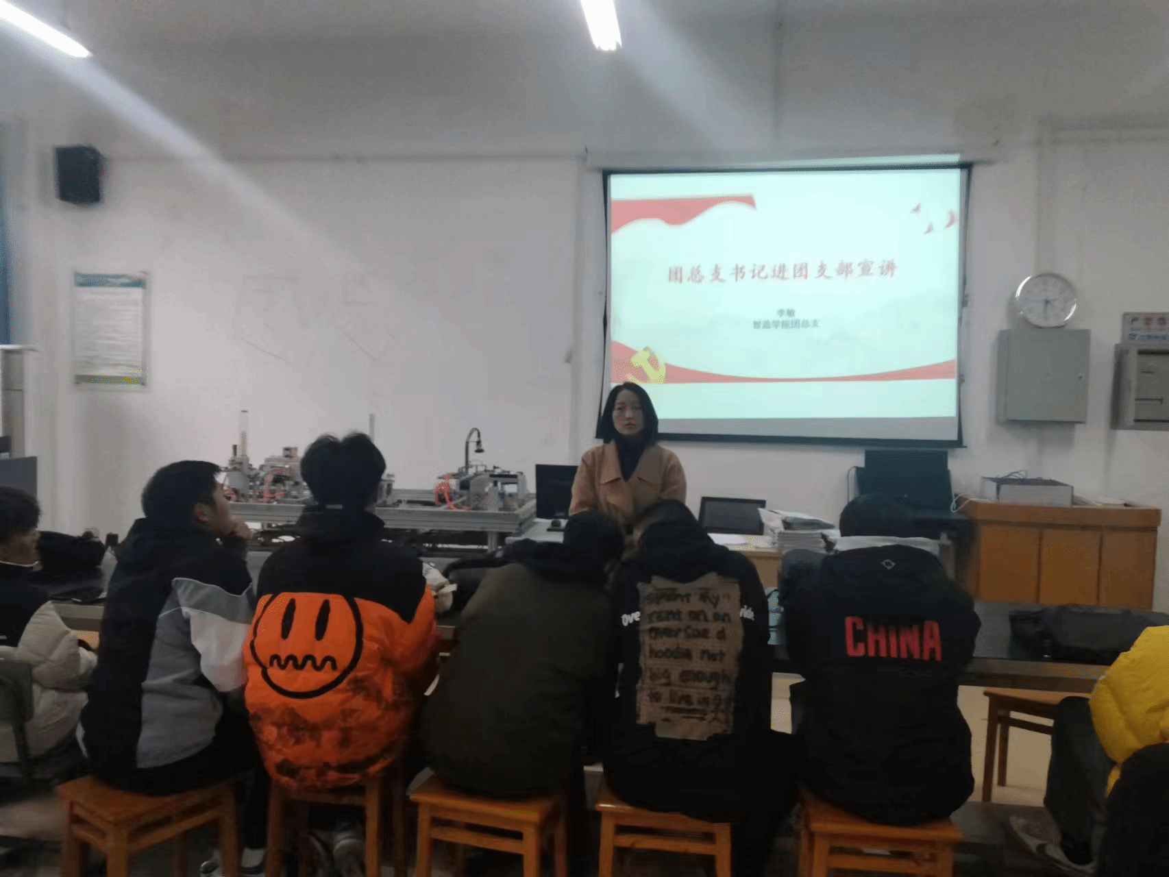 2023年11月26日团总支书记李敏在北苑B206开展新时代社会主义思想宣讲会,参会人员有各团支部团员。此次宣讲会旨在深入学习贯彻习近平新时代中国特色社会主义思想,引导广大师生坚定理想信念,增强责任感和使命感。