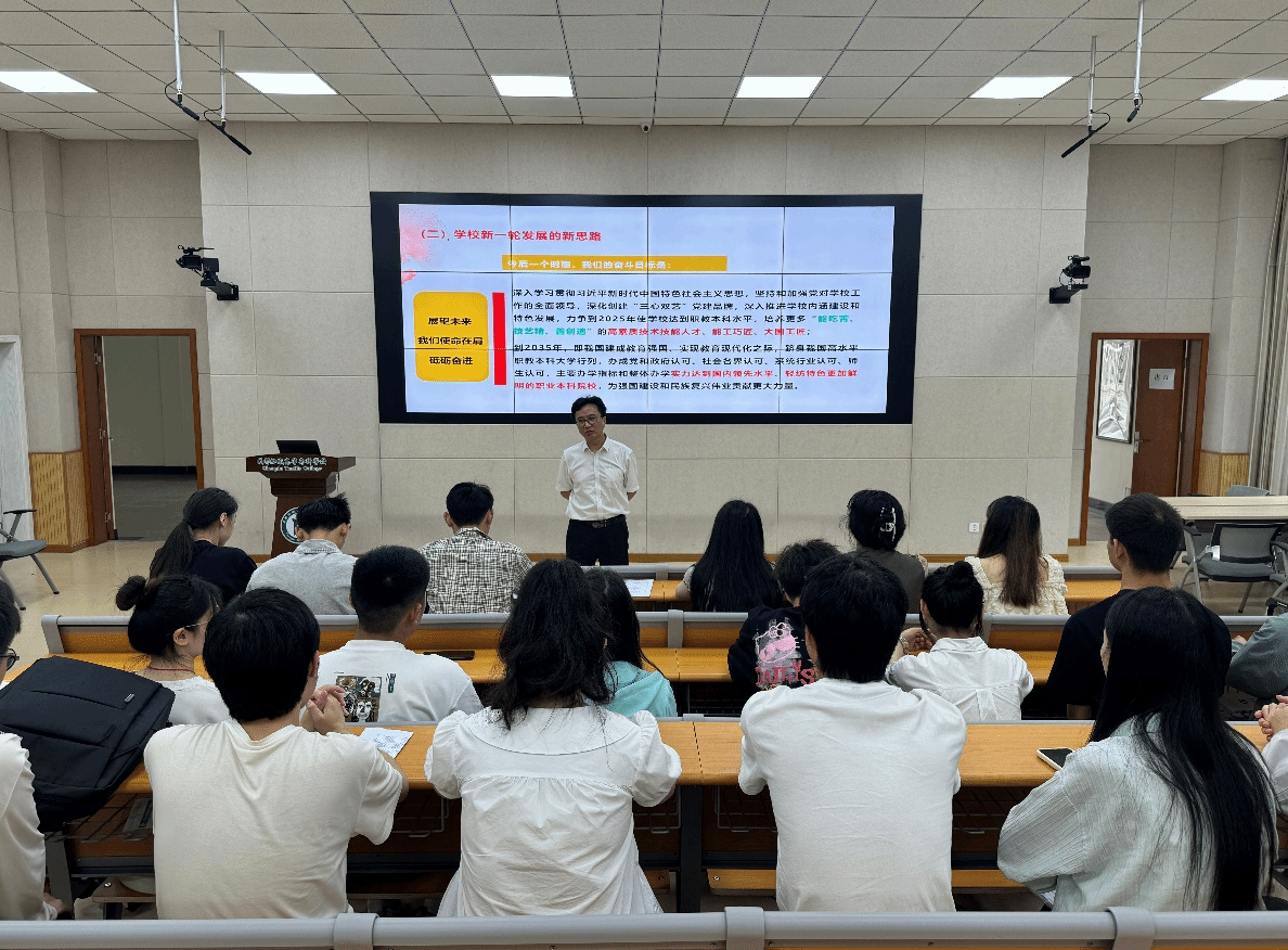 为深入学习贯彻落实学校第七次党代会精神,推动学校全面创建职教本科目标落地落实,结合智能制造与装备学院工作实际,围绕“我为升本怎么干”大讨论活动安排,4月16日,学院学生党支部在学校综合楼X1114开展了学习贯彻学校第七次党代会精神专题党课。此次专题党课邀请了学院党总支书记曹选平主讲,学生党支部师生党员、入党积极分子合计50余人参加党课学习。党课由学生党支部书记龙攀主持。