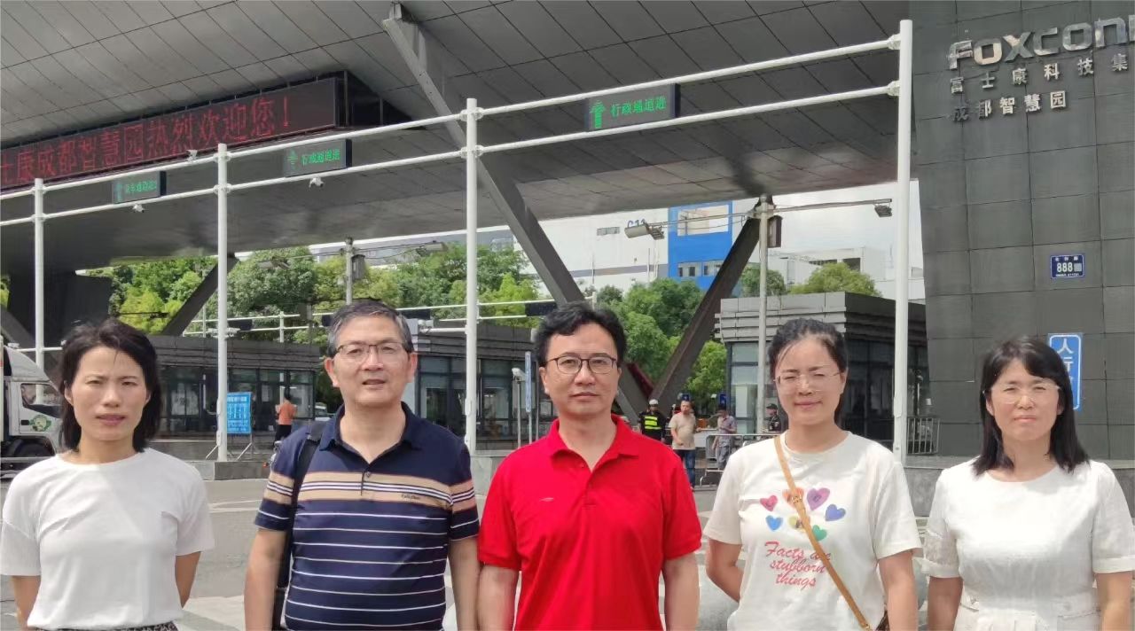 7月3日智能制造与装备学院机电专业教师和辅导员老师在曹选平书记的带队下,深入鸿富锦精密电子(成都)有限公司开展毕业生就业回访和职教本科调研。