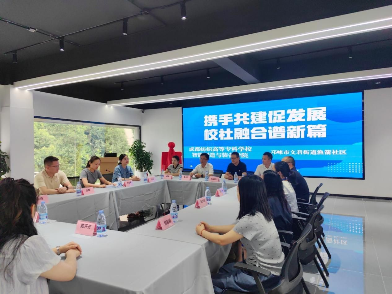 7月3日上午,智能制造与装备学院与邛崃文君街道渔箭社区共建的“社会实践基地”暨“创新创业基地”揭牌仪式在渔箭社区党群服务中心举行。双方以“携手共建促发展 校社融合谱新篇”为主题,共绘校地合作新蓝图。学院党总支书记曹选平、渔箭社区党委书记宋建军及双方代表共同出席。