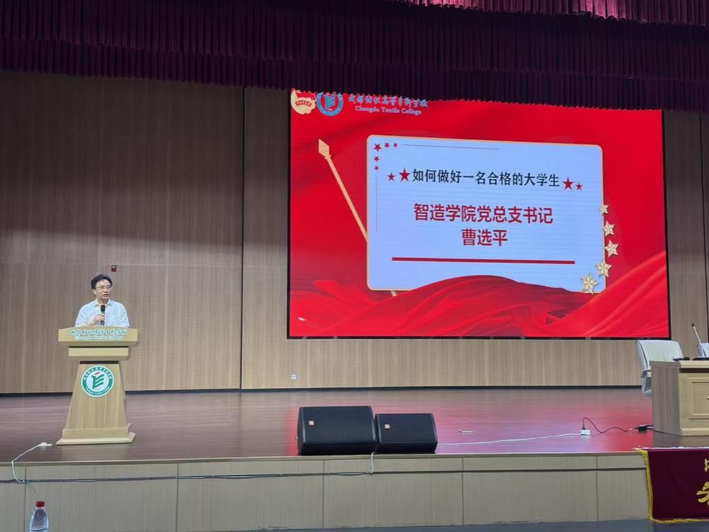9月14日上午,学院重点开展了新生入学教育专题环节。智造学院党总支书记曹选平为同学们带来了题为《如何做好一名合格的大学生》的开学第一课,他从责任担当、学风养成、价值追求等方面深刻阐释了大学生成长成才的内涵与路径,勉励同学们立志做德智体美劳全面发展的新时代青年。