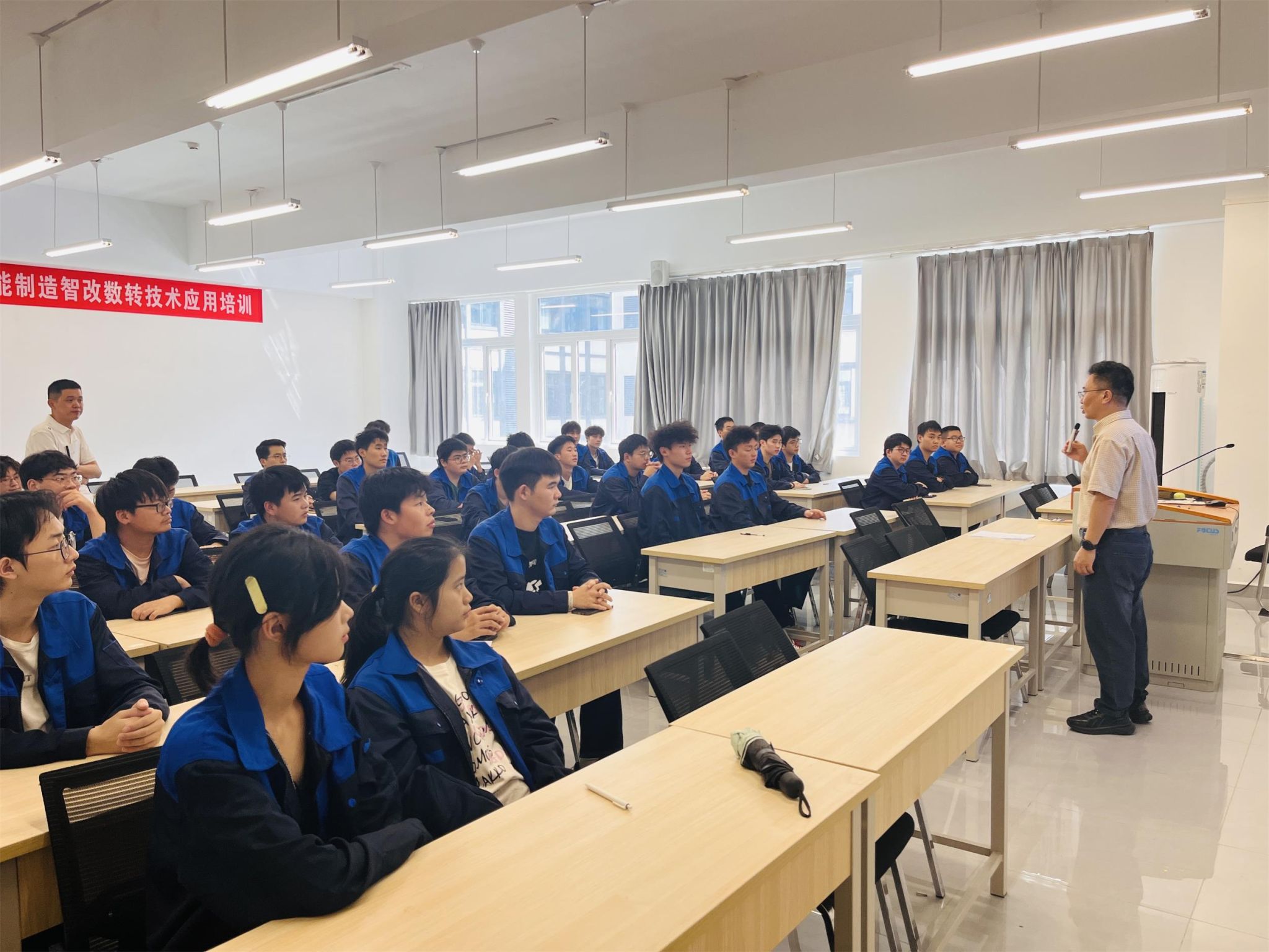 9月23日,由智造学院与吉利汽车集团共同举办的“吉利九月汽车安全与规范——合规护航成长·质量铸就未来”主题活动在智能汽车工程实训中心行知楼C102圆满落幕。智造学院党总支书记曹选平、新能源技术专业负责人蔡伟、汽车检测与维修技术专业负责人王普及全体实训教师出席活动,与2024级新能源汽车技术学生共同完成了一场别开生面的“安全隐患”闯关赛。