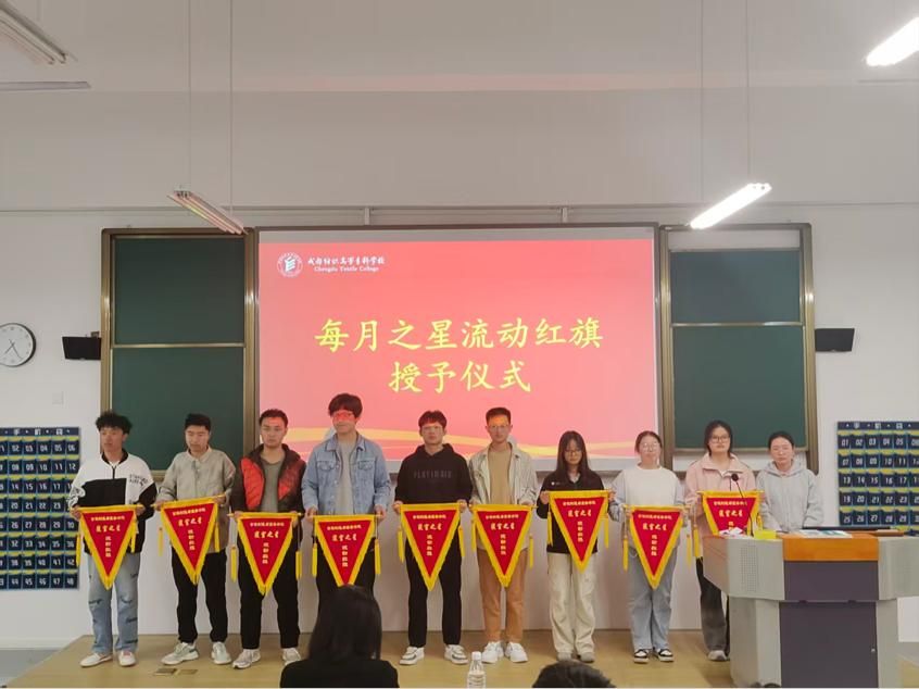 培训尾声,“寝室每月之星” 流动红旗授予仪式顺利举行。蔡玥老师为获评的12个优秀寝室代表颁发流动红旗,肯定其在卫生整洁、文化建设、纪律遵守等方面的突出表现,并号召全体寝室长以优秀为榜样,积极推动寝室文明建设,形成 “比学赶超” 的良好氛围。