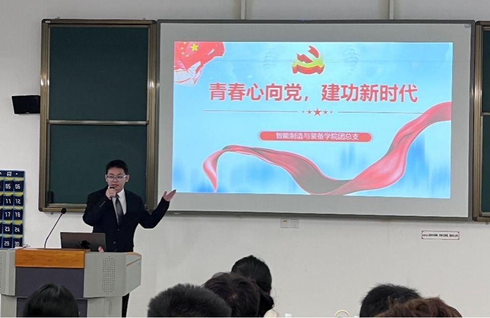 2025年10月29日晚智能制造与装备学院团总支为强化团干部队伍建设,提升基层团组织战斗力,在知著楼c101开展“青春心向党,建功新时代”第一期团干培训大会,团支部的100余名学生会成员以及2025级班长与团支书参与培训。