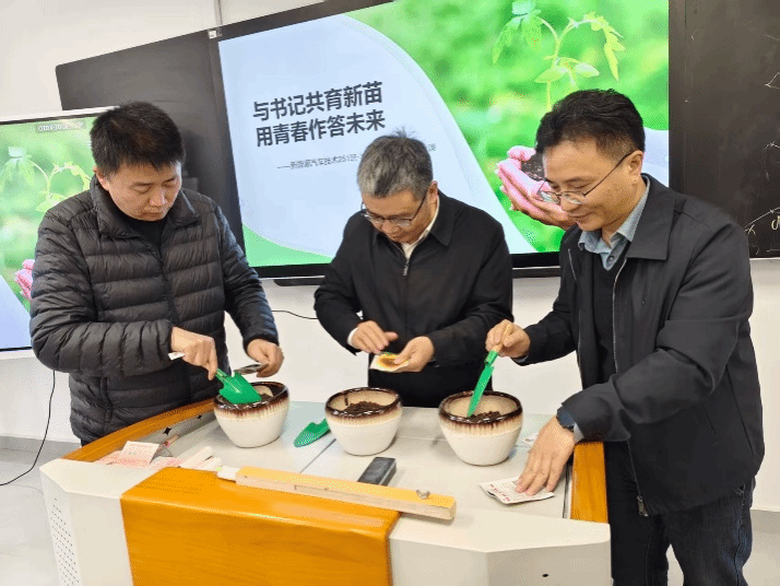 班会的尾声温馨而富有深意。班级准备了向日葵种子,邀请任书记、学院曹书记和付院长共同播下。辅导员在总结中动情地说:“领导们今天为我们播下的,不只是向日葵的种子,更是关怀的种子、肯定的种子、希望的种子。这份期望,来自书记,来自学校,更来自我们身处的伟大时代。它是一份沉甸甸的‘青春考题’,而答案,就写在未来我们每一次的拼搏与成长里。希望同学们以此次班会为契机,书写好自己的‘种子成长计划’”。