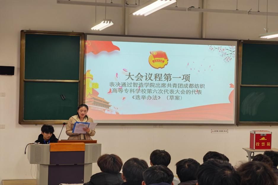 大会在庄严的团歌声中拉开帷幕。会议严格按照《中国共产主义青年团基层组织选举规则》和学校团委相关文件要求,依次审议并表决通过了《智造学院出席共青团成都纺织高等专科学校第六次代表大会代表选举办法(草案)》、代表正式候选人名单、监票人名单及计票人名单。