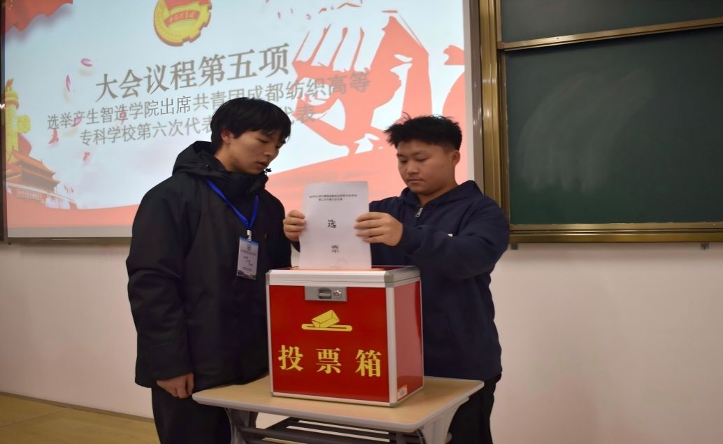团代表选举议程结束后,会议继续召开了智造学院学生代表大会。会议选举产生了严玮喆等13名同学为成都纺织高等专科学校第十一次学生代表大会代表,并选举王璐佳、马富发、周明党三名同学为校第十一次学代会常任代表。大会在圆满完成各项议程后胜利闭幕。