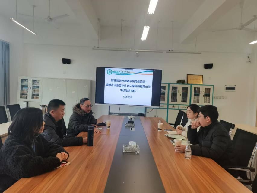 1月22日,成都市兴蓉宝林生态环保科技有限公司刘校彰、谢柳婷一行到访智能制造与装备学院,开展校企合作交流座谈会。学院院长付学敏、学生管理与就业创业工作处副处长刁家志、学院党总支副书记蒋佳芯及就业工作辅导员等人员参会,双方围绕人才培养、毕业生就业、岗位需求等核心议题深度洽谈。