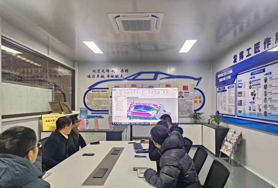 李明富一行实地考察了成都航天模塑股份有限公司由GF设备构建的五轴加工中心生产线、石墨加工中心生产线、电火花生产线等生产场景以及模具生产过程。在与成都航天模塑股份有限公司代表的座谈中,双方立足企业生产运行实际需求,围绕我校中瑞GF产线的应用落地、效能提升与发展方向展开深度研讨。李明富副校长重点阐述了该产线所具备的生产中心、技术中心、培训中心三大核心功能定位,并聚焦生产功能模块,与企业代表就产品特点、产品供给、产品加工及生产管理模式等关键议题开展交流。成都航天模塑股份有限公司生产部部长邓伟,结合企业实战经验,为我校中瑞GF产线的高效应用提出了宝贵建议。