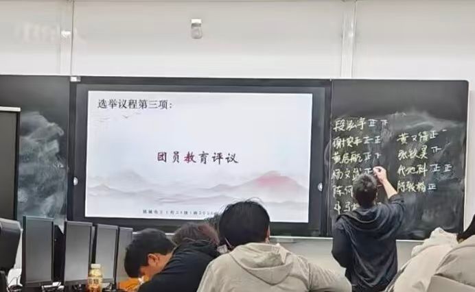 会议在团歌声中开始,全体师生起立奏唱团歌。随后,各班团支部书记进行现场述职,汇报年度团务工作情况。以机械电子工程24级1班为例,过去一年,该支部围绕“传承五四精神”“筑牢防线·平安护航青春”“华诞映初心”等主题,开展了9次主题团课和3次团员大会。支部书记介绍,通过落实“三会两制一课”制度,支部完成了智慧团建转接、团员信息核对等基础工作,上学年发展新团员3名、青马工程学员4名、入党积极分子6名。