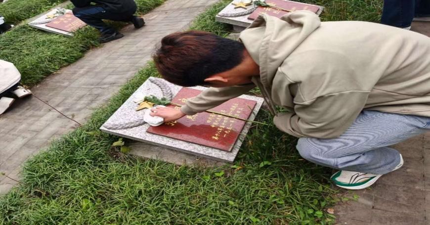 活动现场,庄严肃穆。全体志愿者肃立默哀,向革命先烈敬献花篮,鞠躬致敬,表达对先烈们为国为民、英勇献身的感恩之情。学生代表发言表示,将铭记先烈事迹,传承先烈精神,把对先烈的崇敬转化为学习的动力,以青春之力勇担时代使命。