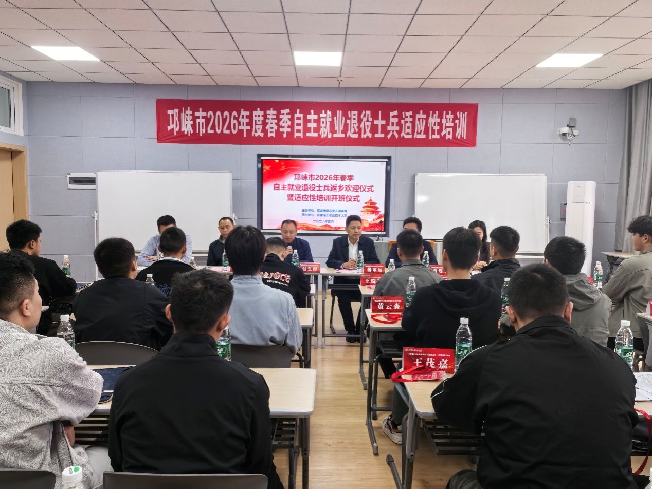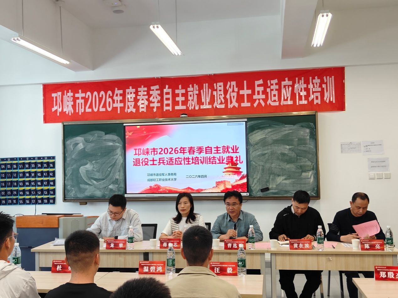 春晖映戎装,奋进正当时。4月13日至17日,由邛崃市退役军人事务局主办、成都轻工职业技术大学承办的邛崃市2026年春季自主就业退役士兵适应性培训班,在我校邛崃校区顺利举行并圆满落幕。为期五天的系统培训,通过“政策导航+技能实训+红色铸魂+岗位直通”四位一体的课程设计,助力春季返乡退役士兵顺利实现从部队到地方的角色转换,迈步新征程。