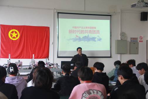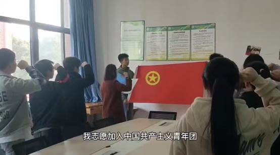 随后,李敏书记带领同学们重温入团誓词,“我志愿加入中国共产主义青年团,坚决拥护中国共产党的领导……” 同学们铿锵有力的声音传递出他们身为共青团干的自豪感,展示了他们作为青年学子奉献国家的坚定理想和追求。李敏书记讲道:时光不老,青春正好。跨越世纪风云,踏上百年征程。新时代的青年,青春正当时,奋斗正当时,应不忘初心、继续前进,唱响新时代的青春之歌,努力成长为堪当民族复兴重任的时代新人。