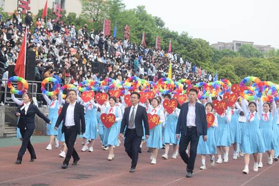 上午9:00,运动会入场式开始,我院党总支书记曹选平、院长罗纲、副院长付学敏、党总支副书记兼任团总支书记李敏带领学院全体教师及部分同学组成师生方阵。他们踏着整齐的步伐,高呼着“智能制造,风华正茂,敢于探索,勇于创造”的口号,昂首着走进赛场,洋溢着青春活力。