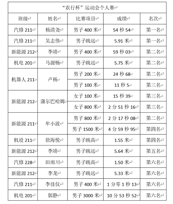 踏着春天的气息,迈着轻盈的脚步,4月2日下午,本届“农行杯”运动会圆满结束,我院在此次运动会中取得了优异的成绩,获奖情况如下: