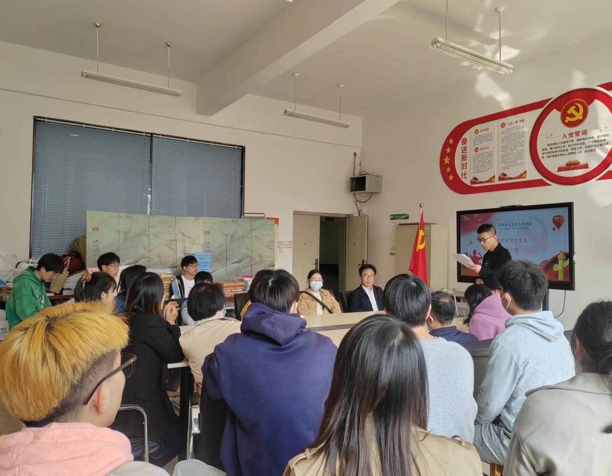 谭名海等10名同志做了表态,他们表示,今后会此为契机,进一步加强学习,努力工作,争当一名合格的共产党员。学生党支部书记任健老师带领他们进行入党宣誓,庄严宣读了入党誓词。学院党总支书记曹选平书记做了对新入党的谭名海等10名同志讲话,对他们前期表现表示肯定并提出了几点意见,指出,要进一步深入学习习近平新时代中国特色社会主义思想和党的二十大精神,希望他们今后在学习和生活上都要再接再厉,不断进步,做好带头,努力为大家树立榜样。