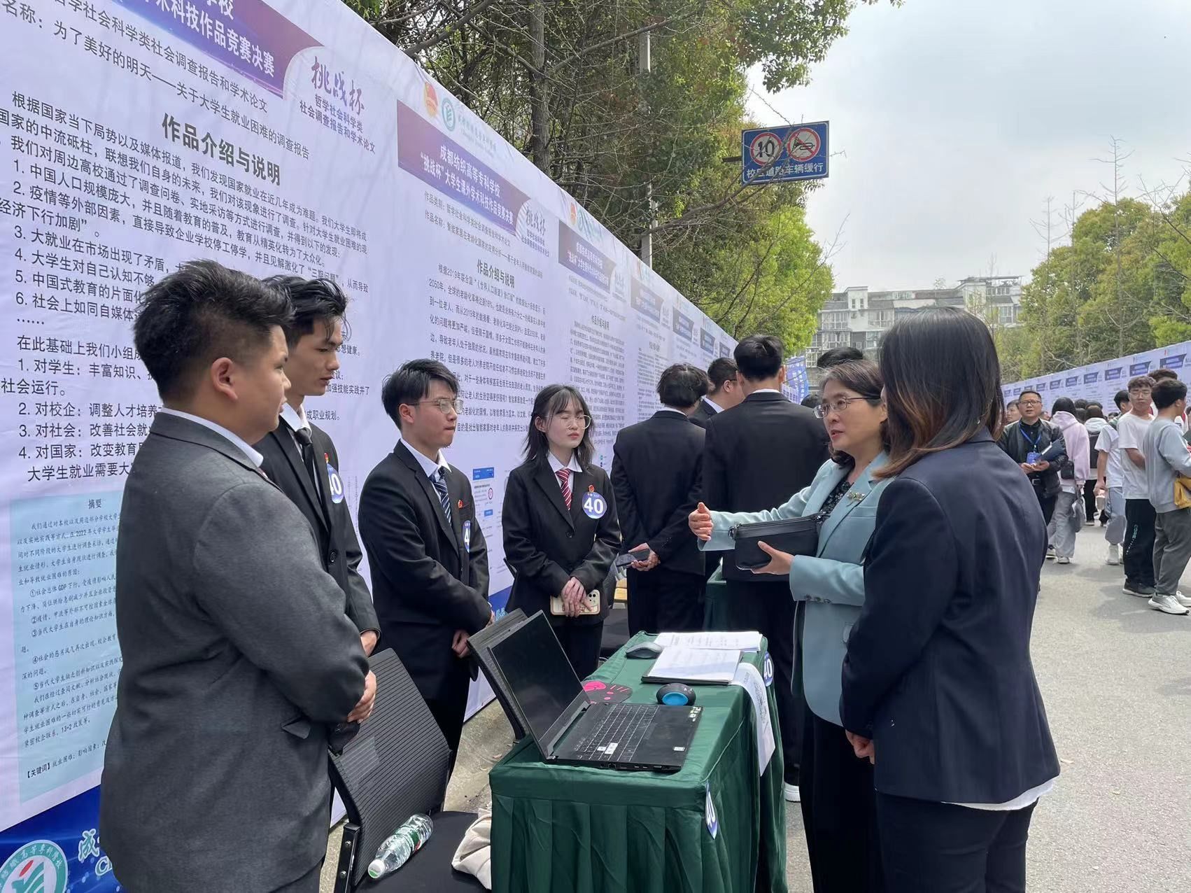 路演现场热火朝天,同学们的创新创意吸引了许多同学驻足观看,评委老师提出了宝贵的建议,同学们表示受益匪浅。