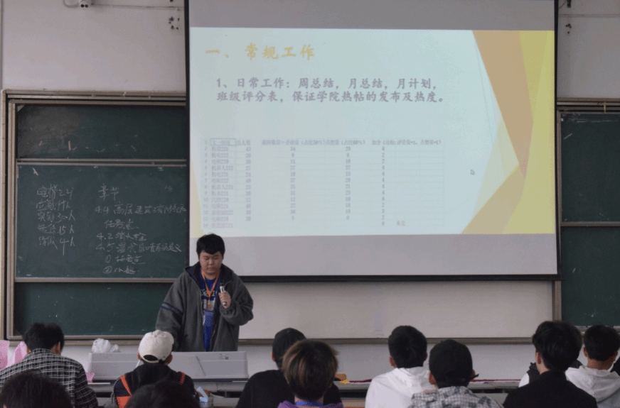 各个部门依次上台讲述了3月的工作总结以及4月的工作计划简介,简介明了的向各部门干事说明了本学期自己部门将要举办的活动或者是新学期部门的计划。