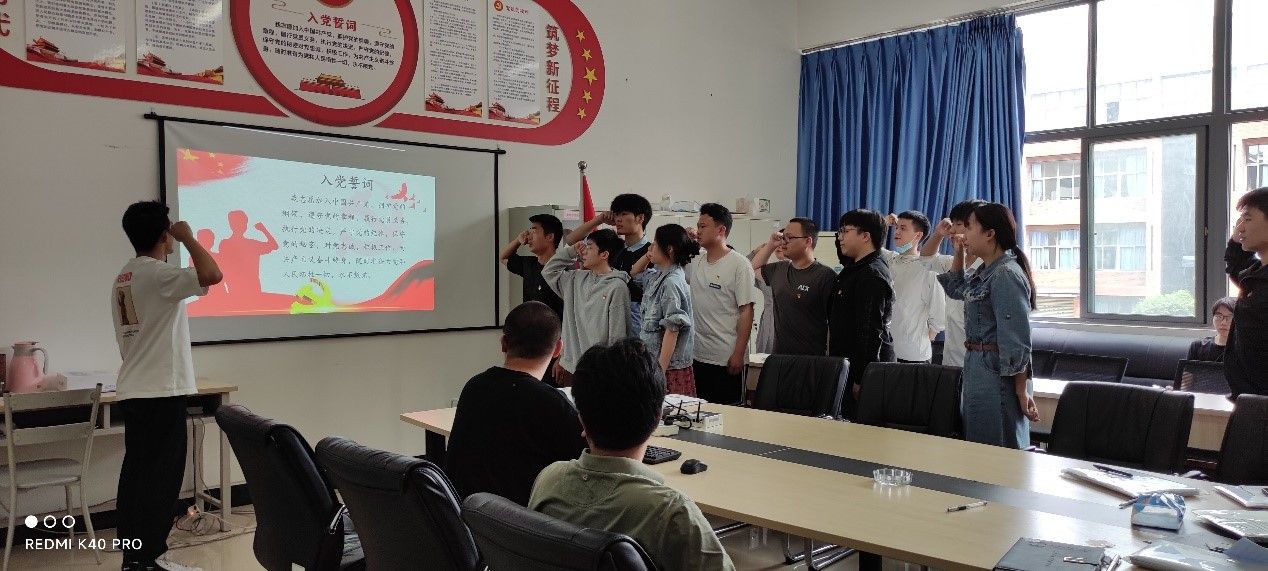 最后,在马源畅同志的带领下,9名同志重温入党誓词,大家昂首挺胸,朝气蓬勃,面向党旗庄严宣誓,铿锵有力的誓言表达出了大家对党的无限忠诚转化为担当奉献、干事创业的强大动力。