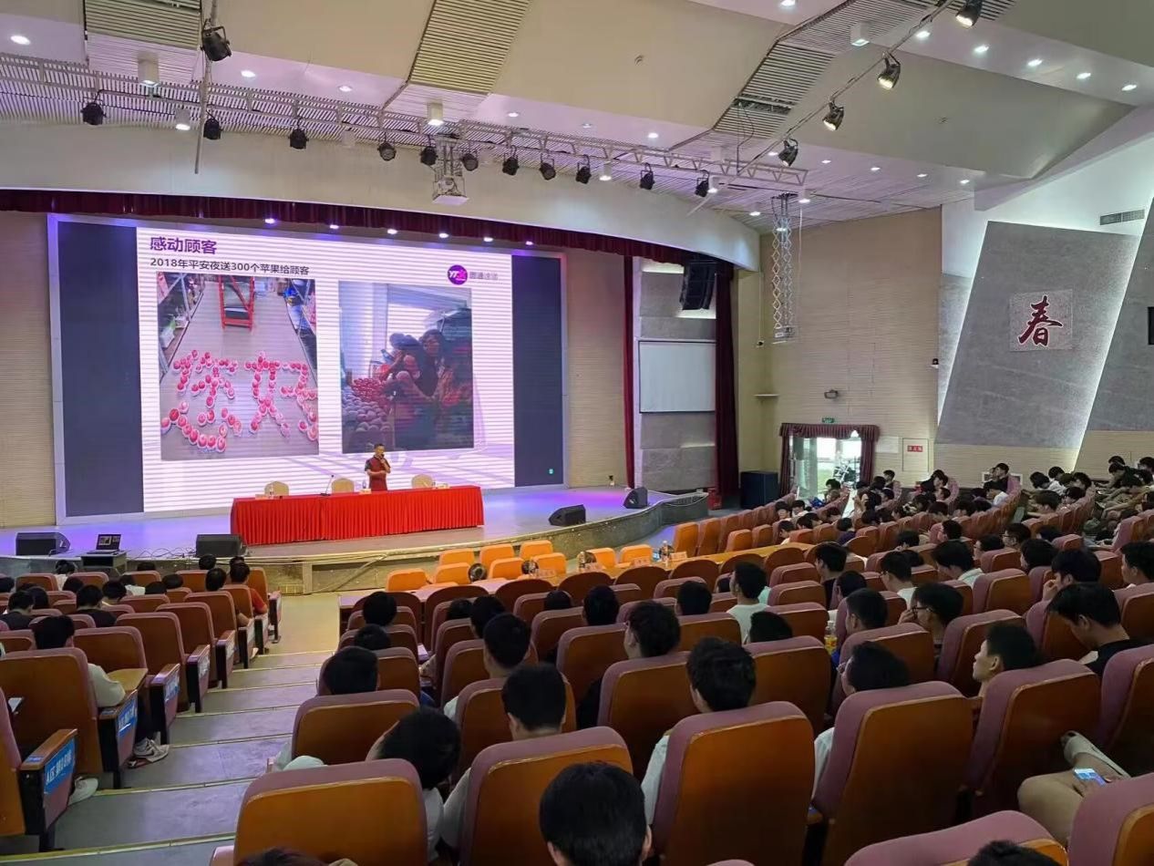 唐建回顾了自己的求学经历,在恩师和同学们的帮助下,他从大一开始就树立学习目标,脚踏实地、积极向上,努力成为同学的榜样并获得了留校资格。在留校工作的12年中,他负责实验室管理工作且从未出过问题。他主动带领学生做校园创业尝试,扎根快递行业。并用亲身实践告诉同学们如何获得客户的认可,如何让客户感动,如何让失去的客户再回来,在遇到客户理赔问题时怎么样来化解矛盾将危机转变成商机。